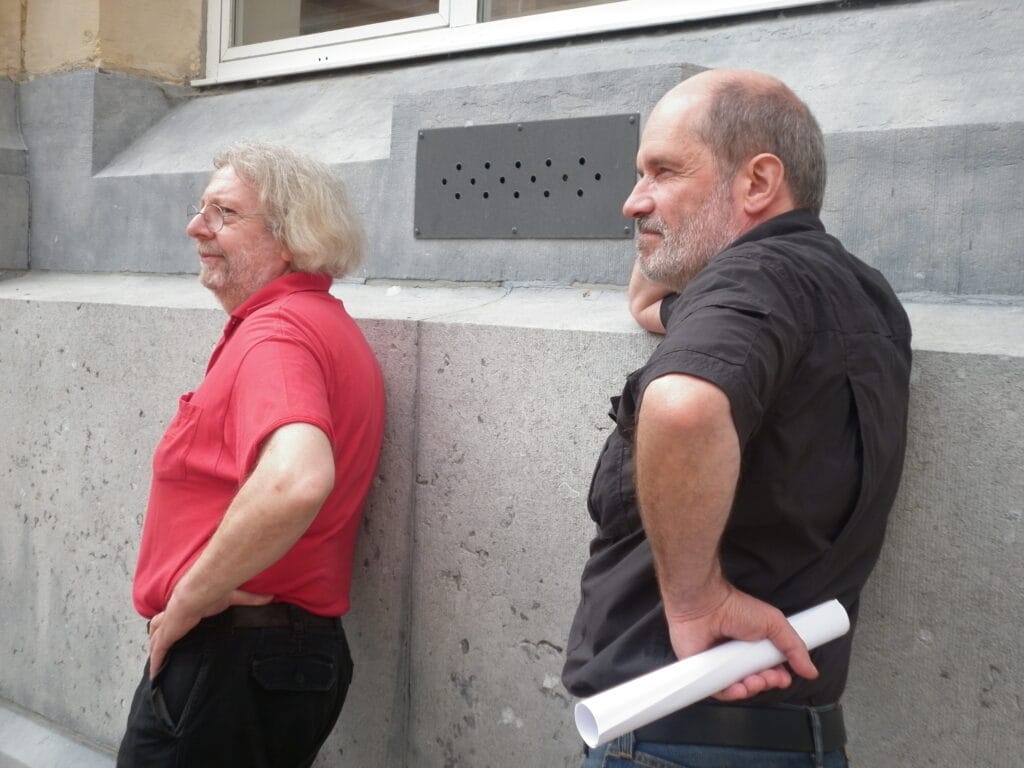 Montage « cube de verdure » au château de Seneffe (2000)Transport – installation « LArche » parc Tenrenken (2000)Transport – installation « LArche » parc Tenrenken (2000)Transport – installation « LArche » parc Tenrenken (2000)Réalisation du « Tore » pour « Utopies Géométriques (2002)Montage de cire en atelier (1981)Travail en fonderie (2019)Exposition Gembloux, Espace Athena (2013)Montage exposition Gembloux, Espace Athena (2013)L’atelier de sculpture de l’ARBA-ESA (1978)L’atelier de sculpture de l’ARBA-ESA (1980)L’atelier de sculpture de l’ARBA-ESA (juin 2015)Participation au symposium organisé par Villeroy & BochPréparation en atelier de « Point de Vue » (1990)Montage « cube de verdure » au château de Seneffe (2000)Modelage de la sculpture en béton « Le Temps » (1980)Assemblage de « Transfert » à Hamois (1998)Assemblage de « Transfert » à Hamois (1998)Assemblage de « Transmutation » au Parc de Bruxelles (1991)Modelage de la sculpture en béton « Le Temps » (1980)